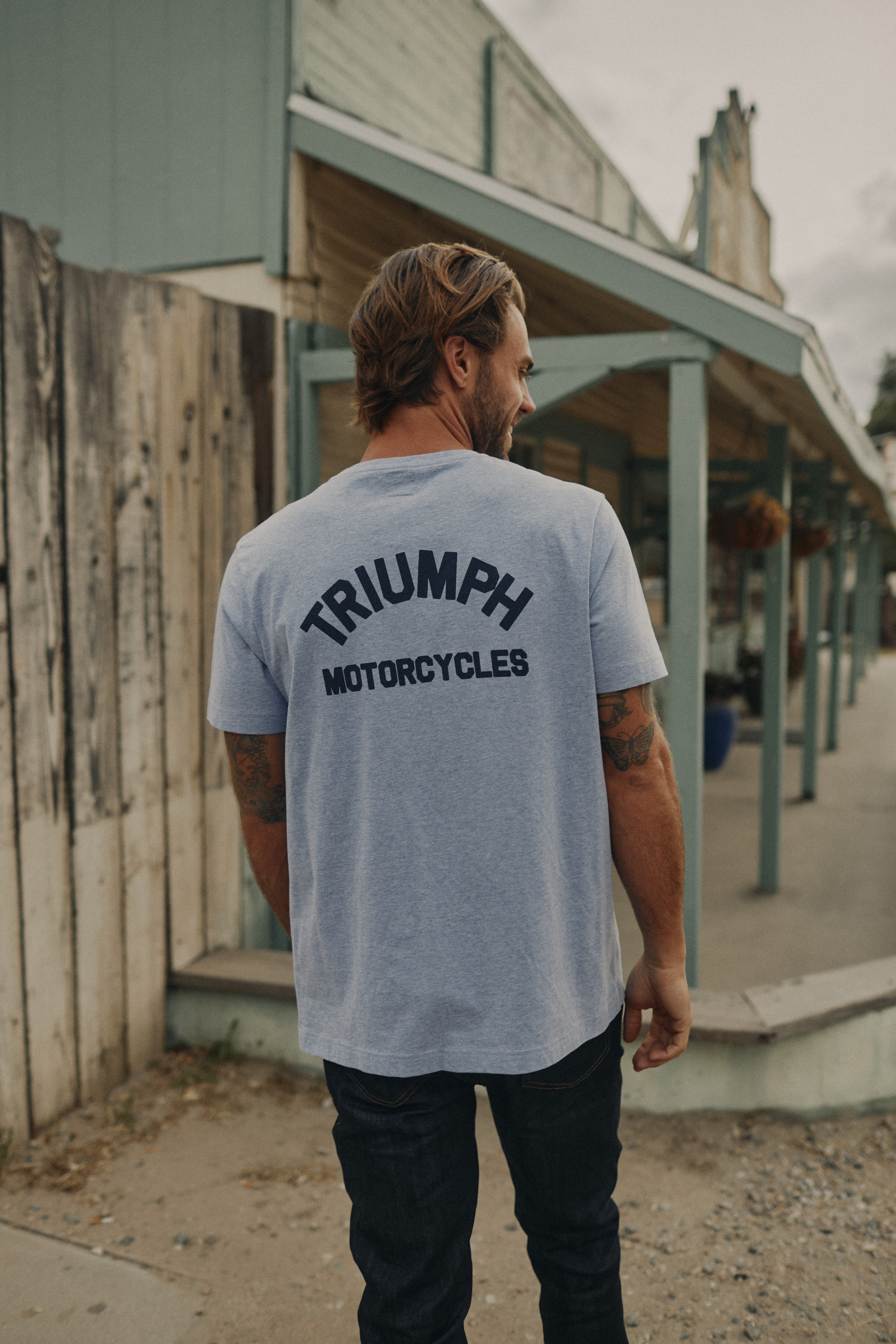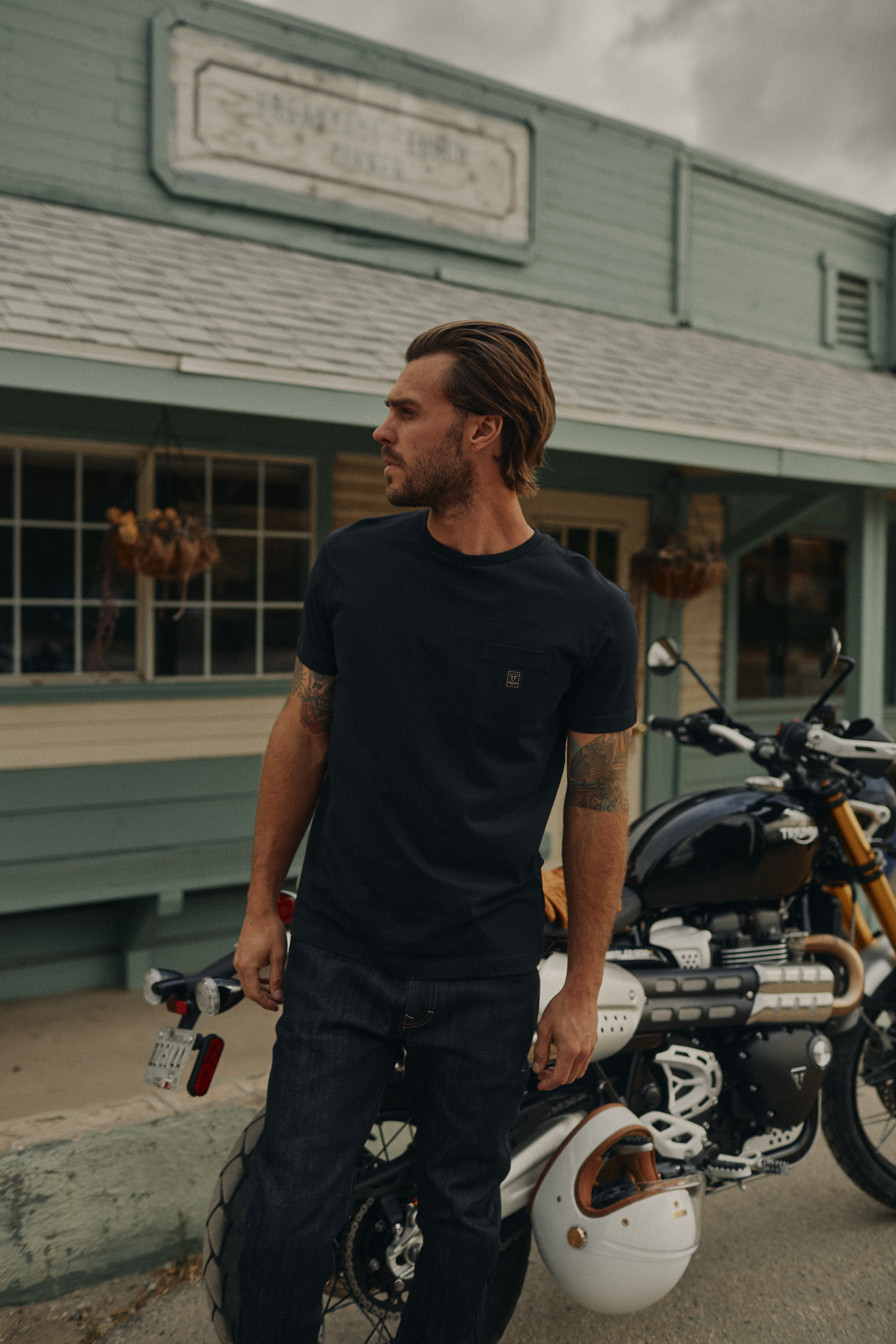 Classic fit tee with patch pocket on the front and our Triumph Motorcycles Arched Logo on the back.